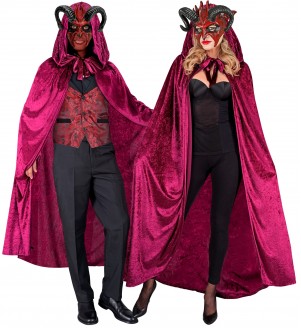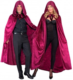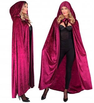 "BURGUNDY VELVET HOODED CAPE" 140 cm