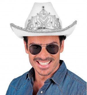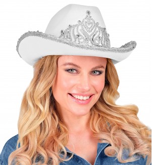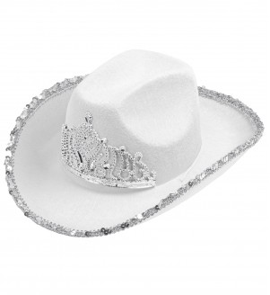 "WHITE PARTY COWGIRL HAT WITH TIARA"