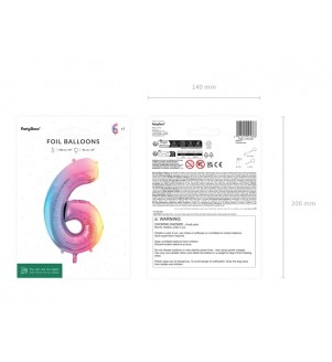 Fooliumist õhupall. Number "6" värviline . Suurus 34"/86 cm