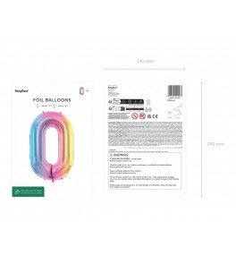 Фольгированный шар. Цифра "0" разноцветная . Размер 34"/ 86 см