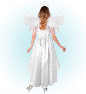 В состав костюма входит : платье ,ободок нимб ,крылья .