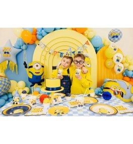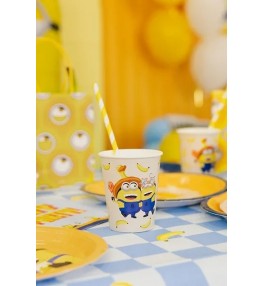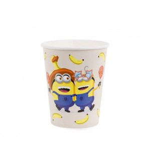 Бумажные стаканчики с изображением миньонов, бежевого цвета, с принтом.